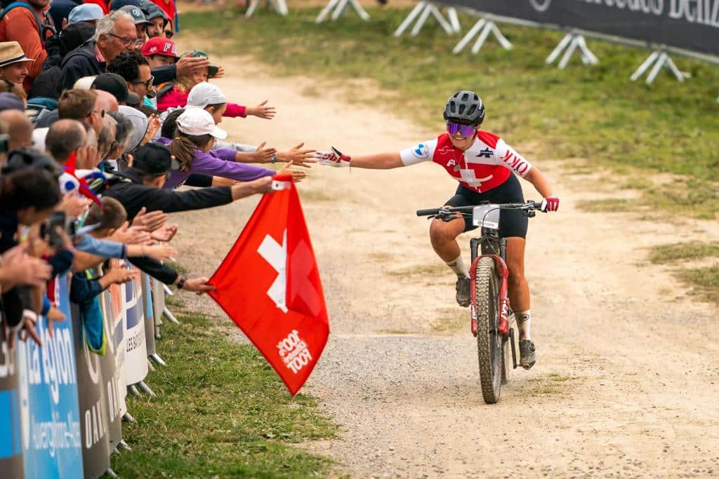 Und sie schlägt wieder zu: Nach der eher überraschenden Premiere im letzten Jahr − es war ihr erstes E-MTB-Rennen − stellt die 20-jährige Nicole Göldi ihr Können erneut unter Beweis. Sie wird auch dieses Jahr wieder Weltmeisterin im E-Mountainbike in Les Gets (Frankreich).